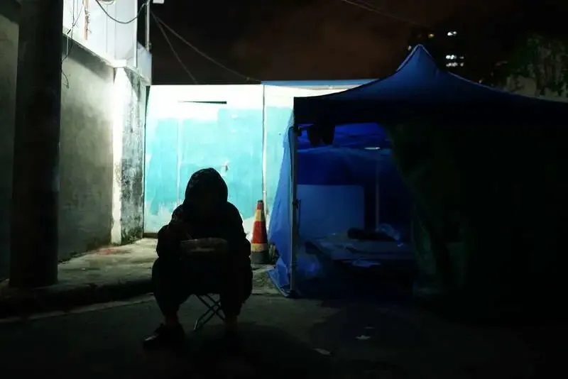 張新容一看心涼了,“沒有床、沒有電,又沒水,洗個臉都洗不成,日子太不好熬了。人家還不錯,給我盆子。”她的鄰居有“流浪漢”,也有因“封控”回不了家的人。這里每天定時有人送來盒飯,也有警察送來抗原檢測試劑。