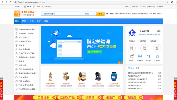 匯總收集一些免費的B2B網(wǎng)站,比如:阿里巴巴、企商匯(www.afyaspot.com)、世界工廠、環(huán)球資源等等,然后在這些B2B網(wǎng)站注冊會員賬號即可,有些B2B網(wǎng)站注冊需要提交公司營業(yè)執(zhí)照,那么我們可以找朋友公司營業(yè)執(zhí)照或網(wǎng)上找個營業(yè)執(zhí)照PS一下即可。