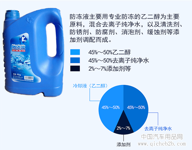 在溫度過低的情況下,為了保證車輛冷卻系統不被凍壞,一般來說常用的防凍液的抗凍溫度也就是冰點在-10℃~-45℃之間,往往根據不同地域的實際需要合理選擇,以滿足使用要求。而在高溫情況下,為了保證不會過早的沸騰,一般來說常用的防凍液沸點在104℃-108℃,而當防凍液加入冷卻系統并產生壓力之后,沸點則會更高。