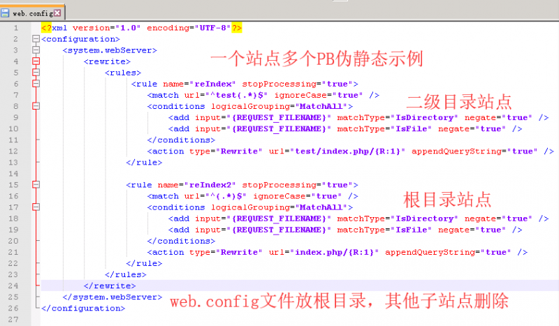 這是適用于IIS7,IIS7.5,IIS8.0及以上的ThinkPHP的偽靜態(tài)規(guī)則,把以下代碼保存成web.config文件,放到FTP的web目錄內(nèi)即可。