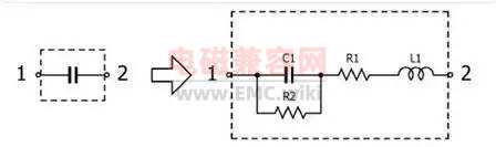 以常見的表貼式MLCC陶瓷電容為例,進行等效模型如下: