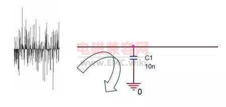 當高頻時,電容C由于阻抗Z已經很小了,相當于把高頻噪聲短路到GND上去了。
