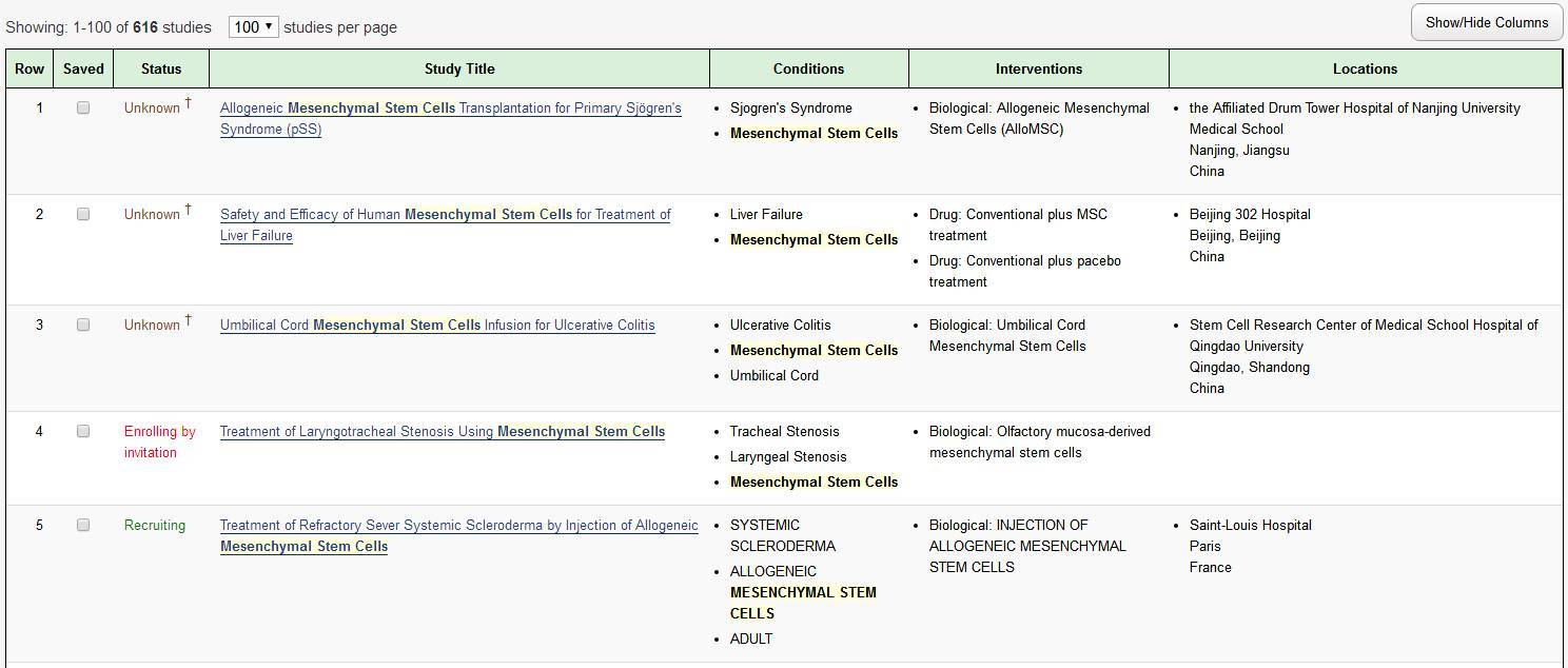 以間充質(zhì)干細(xì)胞(mesenchymal stem cell)為關(guān)鍵詞,我們共檢索到616項(xiàng)研究:
