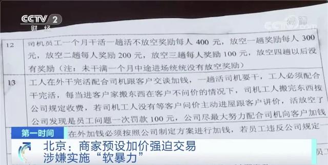 在調查中執(zhí)法人員發(fā)現(xiàn),北京四方兄弟搬家公司利用可能產(chǎn)生的不確定費用預先制定了員工加價的公司規(guī)章制度,同時,為規(guī)避責任,和員工簽訂的都是僅為一天有效期的雇傭協(xié)議。