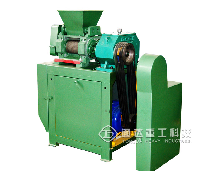 由電動機(jī)驅(qū)動皮帶和皮帶輪,通過減速機(jī)傳遞給主動軸,并通過對開式齒輪與被動軸同步,相向工作。物料從進(jìn)料斗加入,經(jīng)對輥擠壓成型,脫模造球,并經(jīng)過一副鏈條,傳送到破碎篩工作室,篩下和分離成品顆(球)粒,然后返回料與新料混合,再進(jìn)行造粒。隨著電動機(jī)連續(xù)轉(zhuǎn)動,物料的不斷進(jìn)入,方能實(shí)現(xiàn)批量生產(chǎn)。