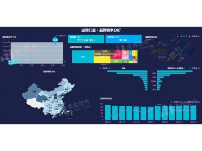 我們曾以OurwayBI可視化數據分析工具制作了一份空調行業·品牌競爭分析,效果如上。