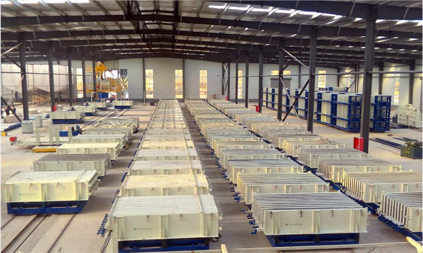 山東天意機(jī)械自主研發(fā)的TYF臥式墻板生產(chǎn)線是生產(chǎn)隔墻板的主要設(shè)備,它主要包括數(shù)控配電室,儲料罐,發(fā)泡攪拌機(jī),電子計量儲料倉,螺旋輸送機(jī),EPS熟化料倉,EPS預(yù)發(fā)機(jī),擺渡車等。自主研發(fā)的大型攪拌設(shè)備配有自動配料系統(tǒng),結(jié)合材料的性能使料漿攪拌更均勻,能夠很好的融合在一起。料漿泵送系統(tǒng)更好的將攪拌好的料漿輸送到設(shè)備里面,澆注模式更簡單方便。發(fā)泡系統(tǒng)采用變頻發(fā)泡技術(shù),提高了發(fā)泡速度,節(jié)省了原材料,墻板成型機(jī)自動行走,產(chǎn)品成型速度高。該生產(chǎn)線自動化程序高,操作簡單,生產(chǎn)效率高年產(chǎn)硅酸鈣板聚苯顆粒復(fù)合輕質(zhì)墻板30萬平方米。