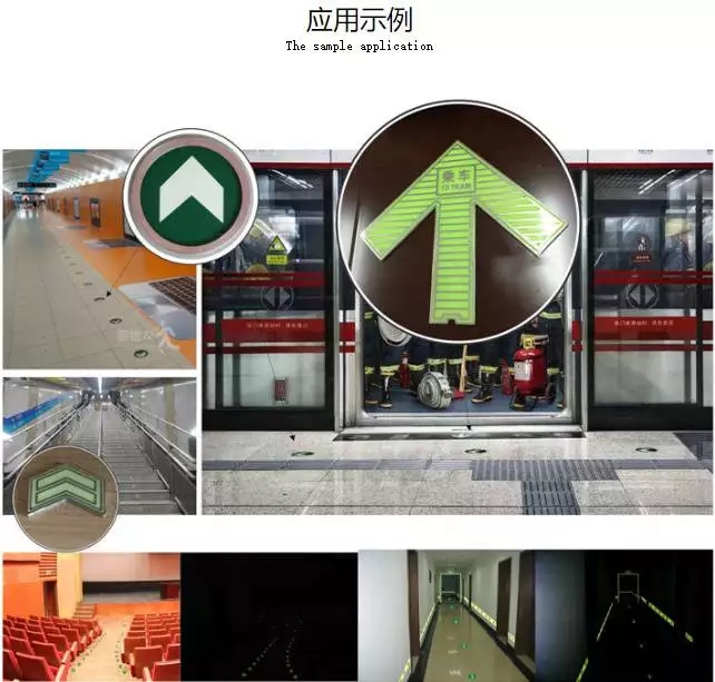 ①指示乘客上下車。 ②在發生緊急停電或火災時,自動發光,可指引乘客疏散逃生。 |